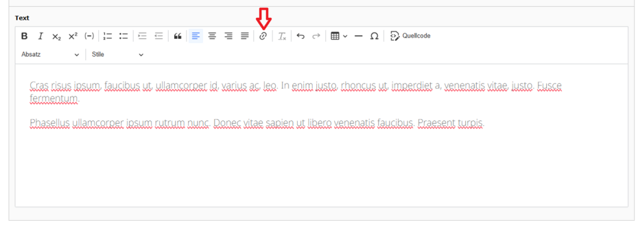 Um einen Link zu erzeugen, bitte auf das Symbol „Link einfügen“ klicken. Es öffnet sich ein Pop-Up Fenster, in dem zwischen verschiedenen Linktypen gewählt werden kann: