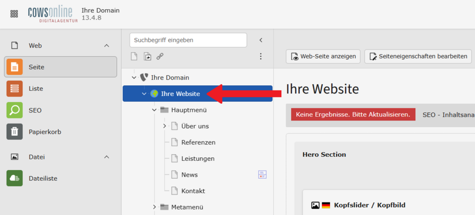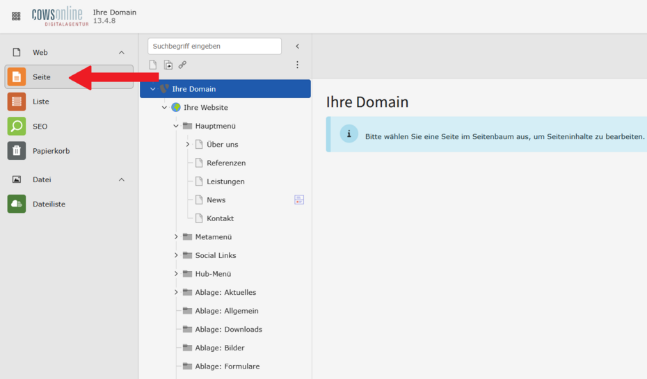 2. In der Navigationsleiste den Menüpunkt anwählen