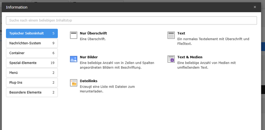 Zur Auswahl stehen “Text”,"Überschrift","Nur Bilder"
