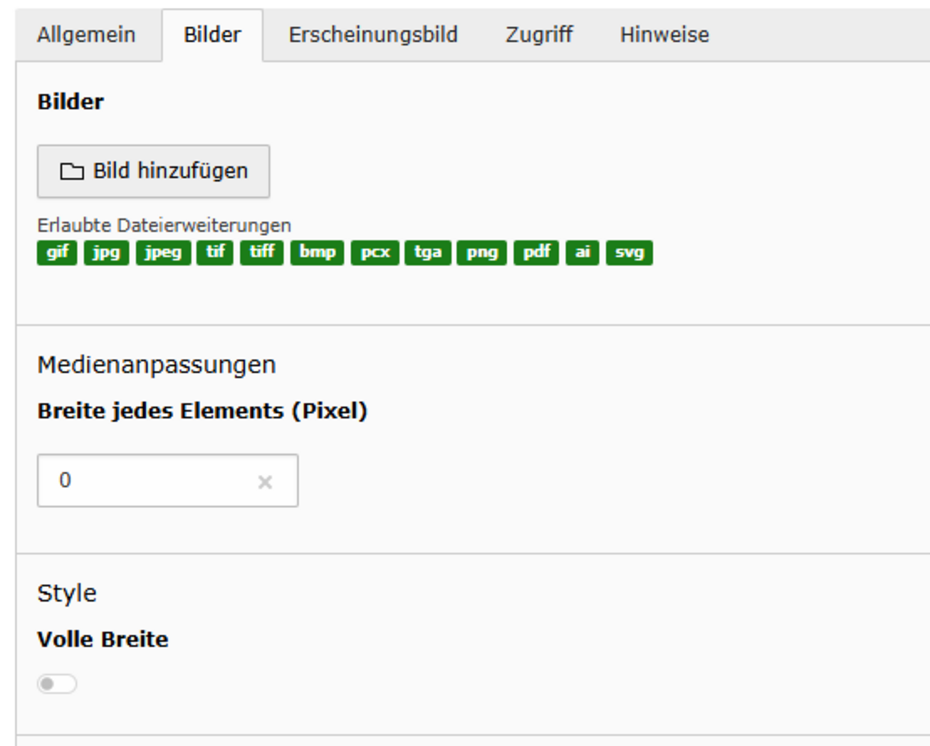 Sollten Sie das Element “Nur Bilder” auswählen, können Sie in dem Reiter “Bilder” Ihre Bilder speichern.